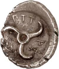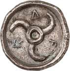 5Õ-Tetrobol, um 500 v. Chr.; 3,07 g. Eberkopf r.//Viergeteiltes Incusum. Müseler I, 11 (dies Exemplar).Gutes sehr schön100,--