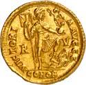 Die weibliche Victoria stellte nur in den Jahren 518 und 519 das Reversmotiv der Münzen Iustins dar. Nachdem am 28.03.519 das religiöse Schisma zwischen den Kirchen Roms und Konstantinopels überwunden worden war, löste der stehende, männliche Engel die Victoria ab (Sear 1987, S 44).