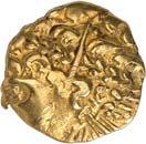 1058Ô-Stater, Archer-Goddess on Lotus-Typ; 6,05 g. König steht l. mit Pfeil und Bogen, l. GarudaStandarte//Lakshmi thront v. v. Kumar Class III, A.6.1. Knapper Schrötling mit leichten Auflagen, sehr schön 400,-1,5:1