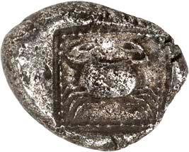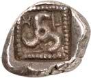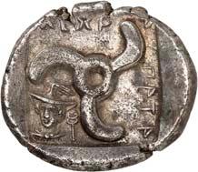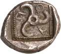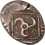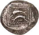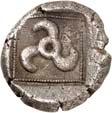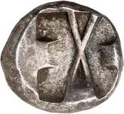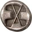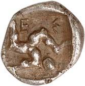 6Õ-Tetrobol, 500/480 v. Chr. (?), unbestimmte Münzstätte; 3,19 g. Eberkopf r.//Viergeteiltes Incusum, in den Feldern Kugeln. Müseler I, 13 (dies Exemplar). Von allergrößter Seltenheit. Feine Tönung, gutes sehr schön300,-Exemplar der Sammlung Klaus Marowsky, Auktion Fritz Rudolf Künker 54, Osnabrück 2000, Nr. 2022.