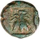 12Õ-Diobol, 500/480 v. Chr., unbestimmte Münzstätte; 1,42 g. Eberprotome r.//Grobes Incusum mit zwei gekreuzten Linien. Müseler -; SNG v. Aulock -; Vismara II, -. R Herrliche Patina, fast vorzüglich125,-Exemplar der Roma Numismatics E-Sale 16, London 2015, Nr. 161.