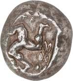11Õ-Stater, 500/480 v. Chr., unbestimmte Münzstätte; 8,55 g. Eberprotome r.//Grobes Incusum mit zwei gekreuzten Linien. Müseler II, 5 (dies Exemplar). R Feine Tönung, Prüfeinhieb auf dem Revers, gutes sehr schön250,-Exemplar der Electronic Auction CNG 131, Lancaster 2006, Nr. 86.