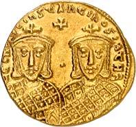 Leo III., 717-741, und Constantinus V. Ô-Solidus, 725/732, Constantinopolis; 4,44 g. Beiderseits Büste v. v. mit Kreuzglobus und Mappa. DOC 5.6; Sear 1504. R Kl. Kratzer, winz. Schürfstellen auf dem Revers, sonst vorzüglich500,--