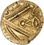 1055 Kanishka II., 332-350. Ô-Stater, Lagermünzstätte; 7,91 g. König steht l. mit Dreizack vor Altar, davor Dreizack//Oesho steht l. vor Buckelstier. Göbl 646 (dies Exemplar abgebildet unter Nr. 3). Von abgenutztem Aversstempel, winz. Kratzer, sonst vorzüglich400,-Das von Göbl im Stücknachweis-Verzeichnis aufgeführten Exemplar Nr. 646.3 ist im Textteil unter Nr. 646.2 abgebildet. Die Provenienz des im Text unter Nr. 646.3 abgebildeten (hier vorliegenden) Stückes ist nicht nachzuvollziehen.