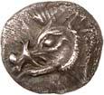 8Õ-Obol, 500/480 v. Chr., unbestimmte Münzstätte; 0,68 g. Eberprotome l.//Incusum. Müseler I, 15 (dies Exemplar). R Sehr schön75,-Exemplar der Auktion Münzen und Medaillen Deutschland GmbH, Stuttgart 2009, Nr. 610. 1,5:1