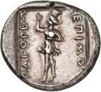 14Õ-Stater, 500/480 v. Chr., unbestimmte Münzstätte; 9,30 g. Eberprotome l., auf der Schulter lineares Symbol//Grob unterteiltes Incusum. Müseler II, 8 (dies Exemplar).Sehr schön 200,-Das lineare Symbol auf der Schulter des Ebers findet sich auch auf Losnr. 30. Wahrscheinlich stammen beide Statere von demselben Prägeherren (Am...?). Bei der Anordnung der beiden Stücke folgen wir dennoch Wilhelm Müselers Werk von 2016. The linear symbol on the boar’s shoulder can also be found on lot No. 30. It is likely that both staters were minted on behalf of the same ruler (Am...?). Nevertheless, we follow Wilhelm Müseler’s work of 2016 regarding the positioning of the pieces in this catalog.