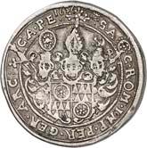 2655Reichstaler 1632. Purimtaler, geprägt auf den Jahrestag des schwedischen und protestantischen Sieges bei Breitenfeld (heute Stadtteil von Leipzig) am 7. September 1631 (nach gregorianischem Kalender am 17. September). 29,11 g. Münzmeister Johann Schneider ("Weissmantel"). Verzierung über 11 Zeilen Schrift, unten Verzierung//Strahlender Name Jehovas, darunter DEXTERA TUA / DOMINE, PERCUSSIT / IN IMICUM / (Verzierung). Ahlström 23 b; Dav. 4546; Leitzmann 778. Hübsche Patina, kl. Henkelspur, vorzüglich500,--