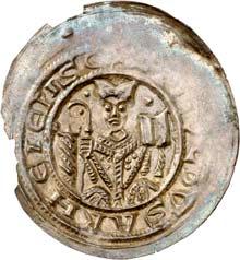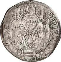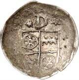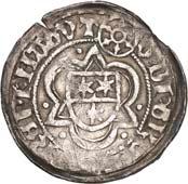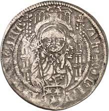 c) Prager Groschen, Wenzel III. (IV.), 1378-1419, Münzstätte Kuttenberg, mit Gegenstempel von Fritzlar auf der Rückseite: Rad mit acht Speichen. 2,35 g. Krusy F 4,1; Slg. Pick I (Auktion Dr. Busso Peus Nachf. 405) -.