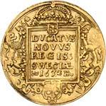 2653 Gustav II. Adolf, 1631-1632. Dukat 1632. 3,45 g. Münzmeister Johann Schneider ("Weissmantel"). Brustbild r. mit Lorbeerkranz, Spitzenkragen und umgelegtem Mantel//Krone zwischen der geteilten Jahreszahl 16 Ü - 3Z, darunter IOH Ù X Ù EIN / GVTER Ú HIRTE / LESSET SEIN / LEBEN FVR / DIE SCHAFF. Ahlström 11 a; Fb. 919; Gräßler/Walde 578. GOLD. Leicht gewellt, sehr schön-vorzüglich1.000,-Exemplar der Slg. Friedrich Popken, Auktion Fritz Rudolf Künker 263, Osnabrück 2015, Nr. 28.