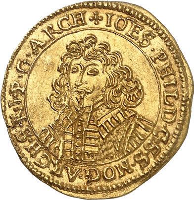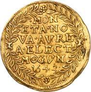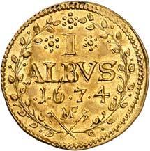 2654Dukat 1634. 3,48 g. Posthume Prägung. 3,48 g. Münzmeister Johann Schneider ("Weissmantel"). Brustbild r. mit Lorbeerkranz, Spitzenkragen und umgelegtem Mantel//Krone zwischen der geteilten Jahreszahl 1 Û 6 Ü - 34, darunter IOH Û X Û EIN / GVTER Ú HIRTE / LESSET SEIN / LEBEN FVR / DIE SCHAFF, unten Verzierung. Ahlström 16; Fb. 919; Gräßler/Walde 604. GOLD. R Fast vorzüglich2.000,-Exemplar der Auktion Teutoburger Münzauktion 127, Borgholzhausen 2019, Nr. 1754. 2655