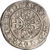2661a) Hessischer Kronengroschen, Ludwig I. 1413-1458, Münzstätte Kassel, mit Gegenstempel von Fritzlar auf der Vorderseite: Rad mit acht Speichen. 2,81 g. Krusy F 4,1; Slg. Pick I (Auktion Dr. Busso Peus Nachf. 405) 999 var.; Schütz 268.41 ff.