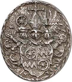 Wachsmuth, A. d. Ä. Urkunde 1588. Münzmeister Andreas Wachsmuth [der Ältere] und seine Ehefrau Sophie verkaufen an Hartmut von Kronberg [† 1608 in Aschaffenburg] und seine Gemahlin Elisabeth, geborene von Mudersbach, ihr Hofgut zu Fürfeld (gelegen im heutigen Kreis Bad Kreuznach) mit allem Zubehör, wozu u. a. ein vormals von Hans Braun erworbenes Haus sowie ein Waldstück in Eichenscheid gehören. Handschrift auf Pergament, 29 x 53 cm, mit den anhängenden Bodenstücken zweier hölzerner Siegelkapseln. Die eine Kapselhälfte birgt das Siegel des Kirchheimer Gerichtsschreibers Daniel Hübner [Adlerschild, oben die Initialen D und H], der hier als Vertreter von Wachsmuths Ehefrau fungiert, die andere das Siegel von Andreas Wachsmuth [behelmter Wappenschild, in dessen Feld zwei überkreuz gestellte Zainhaken, im Feld zu den Seiten des Helmes die Initialen A - W], Die Urkunde ist mehrfach gefaltet und von sehr gutem Zustand.400,-Andreas Wachsmuth der Ältere stammte aus Goslar. Ab 1580 ist er als Münzmeister aber auch als Münzstättenpächter im Kur- und Oberrheinischen Reichskreis nachweisbar (Konrad Schneider, Die Münzproduktion im Oberrheinischen Reichskreis 1571 bis 1620, in: Jahrbuch für westdeutsche Landesgeschichte 24 (1998), S. 105-230, S. 117). Er war ein rühriger Münzunternehmer. 1580 agierte er als Münzmeister in Simmern für den pfälzischen Herzog, von 1586 bis 1604 in Mainz, wo er für die Prägung des erzbischöflichen Geldes verantwortlich war. In dieser Zeit arbeitete Wachsmuth temporär auch für andere Fürsten. Er verwaltete von 1587 bis 1590 auch die vom Wormser Bischof unterhaltene Münzstätte in Neu-Leiningen und erhielt 1588 die Münzstätte von Kirchheim-Bolanden des Grafen von Nassau-Saarbrücken zur Pacht. 1591 wurde Wachsmuth auch als Münzmeister der gräflich-nassauischen Münzstätte zu Wiesbaden verpflichtet.