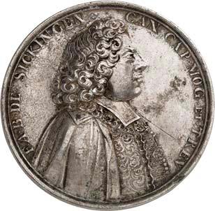 Bei dem vorliegenden Katalogexemplar handelt es sich um ein Exemplar der auf nur 100 Stück limitierten Sonderausgabe, gedruckt auf qualitativ gutem Papier, der im Gegensatz zu den regulären Verzeichnissen dieser Auktion auch eine Tafel mit dem Porträtbildnis des adeligen Sammlers hinzugefügt worden ist. Exemplar der Bibliothek des Sammlers und numismatischen Autors Dr. Emil Bahrfeldt, die der Leipziger Antiquar Gustav Fock aufgelöst hat (Antiquariatskatalog Nr. 619: Bibliotheca numismatica, Münzen und Medaillenkunde aller Völker und Zeiten, enthaltend u.a. die gesamte Bibliothek des Herausgebers der Berliner Münzblätter † Dr. Emil Bahrfeldt. Leipzig 1930).