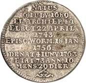 2670 Sammlung Franz HEERDT. SALLY ROSENBERG, Auktion 77 vom 10.10.1933 u.f.T., Frankfurt/Main. Versteigerungs-Katalog Nr. 77. Sammlung Franz Heerdt, Mainz u. A.: I. Münzen und Medaillen von Mainz. II. Münzen und Medaillen verschiedener Länder. III. Numismatische Bibliothek. 8 unpaginierte, 86 S., 16 Tfn. 2352 Nrn. Halbleineneinband, wohl des letzten Viertels des 20. Jahrhunderts, die goldgeprägte Rückenpartie mit bordeauxrotem Bibliotheksleinen, die Deckel außen mit grünlich und gelbbraun marmoriertem Papier bezogen, das vordere und hintere Umschlagblatt der Orig.-Broschur mit eingebunden. Sehr gepflegtes Exemplar. 50,-Franz [Christoph] Heerdt (* 1830 in Mainz, † 1887) betrieb über mehrere Jahrzehnte einen Kolonialwarenhandel in Mainz und besaß darüber hinaus ein Weingut in Hochheim am Main. Vermögend und mit einem ausgeprägten Interesse an der Mainzer Geschichte sammelte er jegliche historische Dokumente und Gegenstände mit Mainzer Bezug, denen er habhaft werden konnte, wie z. B. Archivalien, archäologische Objekte, Gemälde, graphische Blätter, Bücher oder eben Münzen und Medaillen. Gemäß dem Vorwort des Versteigerers in dem hier offerierten Katalog hatte Franz Heerdt seine numismatische Sammlung seit den siebziger Jahren des 19. Jahrhunderts angelegt. Noch zu Lebzeiten ließ Heerdt 1883 eine Gruppe archäologischer Objekte versteigern (Westdeutsche Zeitschrift 6, 1889, S. 273; Günter Grimm Die Zeugnisse ägyptischer Religion und Kunstelemente im römischen Deutschland, Leiden 1969, S. 17, Anmerkung 3). Nach Heerdts Tod ließ sein Schwiegersohn August Rössler die hinterlassenen Sammlungsbestände seines Schwiegervaters auf das in seinem Besitz befindliche Schloss Neuweiher unweit von Baden-Baden bringen. Dort blieben sie über Jahrzehnte unangetastet im Familienbesitz, mit Ausnahme einiger hervorragender Kunstgegenstände, die das Germanische Nationalmuseum in Nürnberg erwerben konnte. Ein Teil seiner Münzensammlung wurde von seinen Erben, vertreten durch eine Enkelin, einer Stuttgarter Bank verpfändet, die sie in einer äußerst ungünstigen Zeit - 1933! - zur Versteigerung brachte (siehe den hier offerierten Auktionskatalog). Die Erlöse blieben durchweg, teilweise erheblich unter den Schätzungen. Eine zweite Partie fand im November 1934 durch denselben Versteigerer neue Besitzer. Heute befinden sich nur noch “geringe Reste” der Sammlung Heerdt auf Schloss Neuweiher, da spätere Generationen die jeweiligen nichtnumismatischen Sachgruppen (die Gemälde erst im Jahre 2014) nach und nach veräußert haben (Franz Stephan Pelgen, Die Mainz-Sammlungen des “Rentners” Franz Heerdt, in: Wolfgang Dobras [Hrsg.], Eine Zeitreise in 175 Geschichten. Der Mainzer Altertumsverein 1844-2019. Mainzer Zeitschrift. Mittelrheinisches Jahrbuch für Archäologie, Kunst und Geschichte 114, Mainz 2019, S. 110f.).