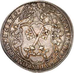 Konv.-Taler 1754, mit Titel von Franz I. 14,04 g. Münzmeister Johann Christoph Busch. Stempelschneider Johann Leonhard Oexlein. Mit den Münzmeisterinitialen I - C - B auf der Vorderseite. Beckenb. 7201 (dieses Exemplar); Slg. Bach (Auktion Künker 238) 4845.