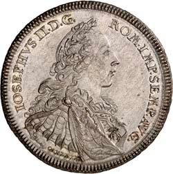 32991/2 Konv.-Taler 1775, mit Titel Josefs II. 14,06 g. Münzmeister Georg Christoph Busch. Stempelschneider Johann Nikolaus Körnlein. Beckenb. 7204 (dieses Exemplar); Slg. Bach (Auktion Künker 238) 4891 leicht var. Prachtexemplar. Feine Patina, vorzüglich-Stempelglanz400,--