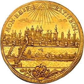 Die ungewöhnliche Stadtansicht mit dem Blick nach Osten und der aufgehenden Sonne mag als Symbol für diesen Vorgang gedacht gewesen sein (siehe Egon Beckenbauer, Die Münzen der Reichsstadt Regensburg, S. 404).