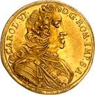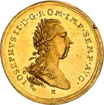 Goldmünzen aus der Zeit des Kaisers Josef II. 32745 Dukaten o. J., mit Titel Josefs II. 17,13 g. Münzmeister Georg Christoph Busch. Stempelschneider der Vorderseite Johann Leonhard Oexlein, der Rückseite Johann Nikolaus Körnlein. Beckenb. Nachtrag 220, V; Fb. -; Slg. Bach (Auktion Künker 238) 4860. GOLD. Von allergrößter Seltenheit. Leichte Fassungs- und Bearbeitungsspuren, sehr schön4.000,--