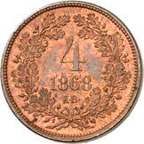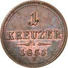 5560Ku.-Kreuzer 1861 E, Karlsburg. 3,45 g. J. 322. Selten, besonders in dieser Erhaltung. Prachtexemplar. Feine Kupferpatina, winz. Stempelfehler, Stempelglanz75,--