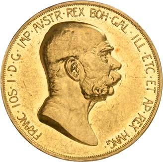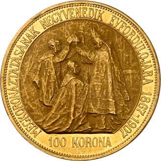 6109100 Kronen 1907 KB, Kremnitz, auf das 40jährige Krönungsjubiläum als König von Ungarn. Originalprägung. 30,49 g Feingold. Fb. 256; J. 417; Schl. 146. GOLD. Winz. Kratzer, vorzüglich2.500,-1,5:1