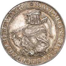 6111 Silbermedaille zu einem Doppelgulden 1885, von A. Scharff und A. Busson, auf das 2. Österreichische Bundesschießen in Innsbruck. Tiroler Adler//Hüftbild Kaiser Maximilians I. mit Armbrust l. Mit Randpunze: "A" im Kreis. 36,36 mm; 22,25 g. Hauser 5129; Slg. Horsky 6309; Slg. Peltzer 1879. Hübsche Patina, vorzüglich +400,--