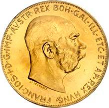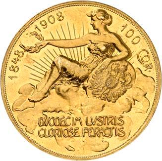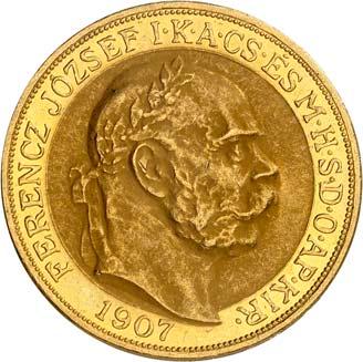 6100100 Kronen 1907 KB, Kremnitz. 30,49 g Feingold. Fb. 249; J. 410; Schl. 91. GOLD. R Nur 1.088 Exemplare geprägt. Originalprägung. Winz. Kratzer, fast vorzüglich5.000,--