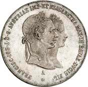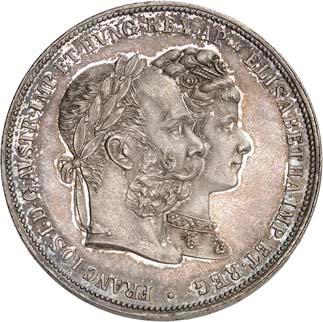 Gedenkmünzen auf die Vermählung des Kaisers mit Elisabeth von Bayern („Sisi“) am 24. April 1854 5541Gulden 1854 A, Wien, auf seine Vermählung mit Elisabeth von Bayern. 13,00 g. J. 299. Prachtexemplar. Feine Patina, fast Stempelglanz100,-5542Gulden 1854 A, Wien, auf seine Vermählung mit Elisabeth von Bayern. 12,95 g. J. 299. Hübsche Patina, vorzüglich-Stempelglanz75,--
