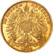 606120 Kronen 1894 KB, Kremnitz. 6,10 g Feingold. Fb. 250; J. 409; Schl. 96. GOLD. Feine Goldpatina, vorzüglich350,--
