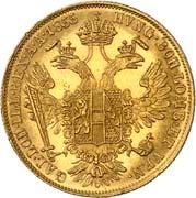 5539Dukat 1855 A, Wien. 3,44 g Feingold. Fb. 490; J. 297; Schl. 372. GOLD. Prachtexemplar. Kl. Kratzer, vorzüglich-Stempelglanz350,--