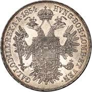 Konv.-Taler (Gulden) 1852 A, Wien. 12,99 g. Die Blätter des Lorbeerkranzes zeigen auf die Buchstaben VS (in AVSTRIA). J. 295. Sehr selten, besonders in dieser Erhaltung. Prachtexemplar. Hübsche Patina, min. Kratzer, polierte Platte1.500,--