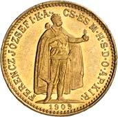 608020 Kronen 1904 KB, Kremnitz. 6,10 g Feingold. Fb. 250; J. 409; Schl. 106. GOLD. Feine Goldpatina, winz. Kratzer, fast vorzüglich300,-1,5:11,5:1