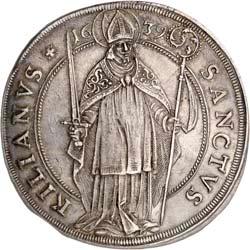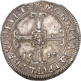 Exemplar der Auktion Fritz Rudolf Künker 229, Osnabrück 2013, Nr. 6309. Einer der bedeutendsten Bischöfe von Würzburg war Johann Philipp von Schönborn. Nach dem Jurastudium in Weilburg und Orleans wurde er 1621 Domherr in Würzburg, 1625 in Mainz. Nach kaiserlichem Kriegsdienst in Ungarn wurde Johann Philipp 1635 Probst, 1642 Bischof in Würzburg, seit 1647 mit Unterstützung Frankreichs auch Erzbischof und Kurfürst von Mainz, schließlich 1663 Bischof von Worms. Der geistliche Barockfürst, dem wir zahlreiche Prachtbauten in seinen Ländereien verdanken, engagierte sich stark in der Reichspolitik. So drängte er auf eine baldige Beendigung der westfälischen Friedensverhandlungen, verfasste 1658 die dem Kaiser Leopold I. vorgelegte Wahlkapitulation und nahm beim Frieden von Aachen 1668 zwischen Frankreich und Spanien eine Vermittlerrolle ein. Auch wegen dieser Bemühungen gelang es ihm, seiner Familie 1671 einen ständigen Sitz und Stimme im Fränkischen Reichskreis sowie überhaupt für längere Zeit eine hervorgehobene Stellung zu verschaffen. Aber auch im Feld der Rechtspolitik war Johann Philipp zukunftsweisend; er schaffte als erster geistlicher Landesherr die Hexenprozesse ab.