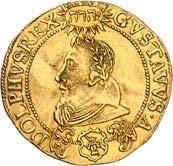 Der gekrönte und geharnischte König steht nach r., mit der Rechten das Zepter schulternd, die Linke am Schwertgriff//NORV - VANDA - GOT O - REX ã (Münzmeisterzeichen des Nicolaus Schwabe) Verziertes Wappen auf Langkreuz, oben Krone. Fb. 33; Hede 17. GOLD. Von großer Seltenheit. Sehr schön-vorzüglich10.000,--