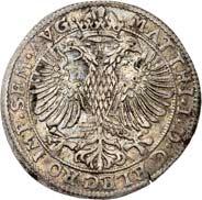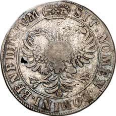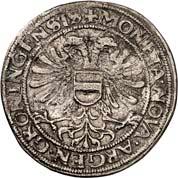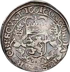 5180Reichstaler (St. Jansrijksdaalder) 1601, mit Titel Rudolfs II. 28,69 g. Ohne Münzzeichen. Münzmeister Hans thom Bussche. Unbekannter Stempelschneider. Johannes der Täufer steht v. v. mit segnender Rechten, in der Linken Buch mit Lamm Gottes und dem Wappenschild der Stadt Groningen//Doppeladler mit Kopfscheinen, auf der Brust Wappenschild der Stadt Groningen, zwischen den Köpfen Reichsapfel mit Krone. CNM 2.21.5; Dav. 4979; Delm. 731 (R2); Puister 604; Purmer Gr 02. RR Attraktives Exemplar mit feiner Tönung, fast vorzüglich5.000,-Exemplar der Slg. Howard D. Gibbs II, Auktion Leu/Hess 6, Luzern 1957, Nr. 1817.