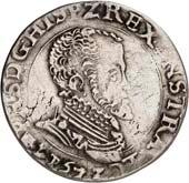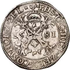 5224Taler (Uniedaalder) / Philipsdaalder 1579, Appingedam. 24,21 g. Münzzeichen Lilie. Münzmeister Hendrik Velthuysen. Unbekannter Stempelschneider. (Münzzeichen Lilie) Û PHS Û D Ù G Û HISP Û REX
