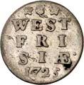 5220Stüber (Wapenstuiver) 1682. 1,38 g. Münzzeichen Rose. Münzmeister David Hagenet. Mit Krone über dem Wappenschild auf der Rückseite. CNM 2.20.19; Purmer Go 11.Prägeschwäche, sehr schön30,-Erworben aus der Slg. Huizinga.