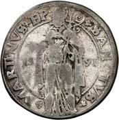 51828 Stüber (Dubbele Flabbe) 1591. 8,35 g. Emissionszeichen Kreuz. Münzmeister Hans thom Bussche. Unbekannter Stempelschneider. Mit der geteilten Jahreszahl 15 - 91 zu den Seiten des Heiligen auf der Rückseite. CNM 2.21.7; Delm. 734 (R4); Puister 1.606 b; Purmer Gr 06. RR Schön-sehr schön100,-5184 5183
