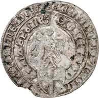 51891/6 Groninger Stüber (Plak) 1588. 0,76 g. Emissionszeichen Stern. Münzmeister Hans thom Bussche. Unbekannter Stempelschneider. Der Wappenschild auf der Vorderseite unter dem Doppeladler gerade plaziert. CNM 2.21.20; Puister 1.628 k; Purmer Gr 20. RR Sehr schön +100,--