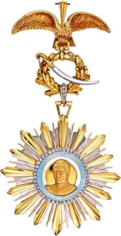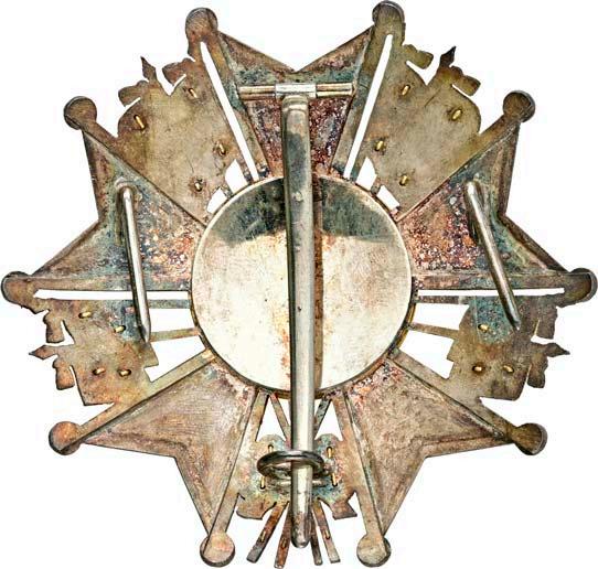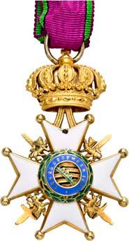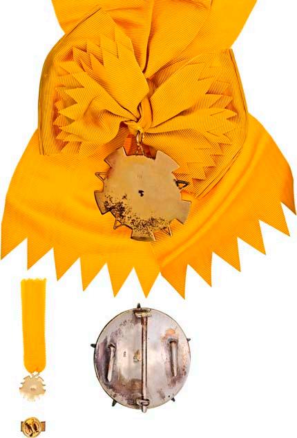 4. Modell, Kleinod zum Großkreuz, Anfertigung der Firma Moritz Elimeyer in Dresden zwischen ca. 1870 und spätestens 1914, 750/000 Gold, tlw. graviert und poliert, emailliert, 95,6 g, am modernen konfektionierten Schulterband aus den 1970er/1980er Jahren.