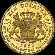 Bavaria. Maximilian II, 1848-1864. 1855 ducat. Later commemoration of the yield of Goldkronach. Only a few specimens known. Extremely fine to FDC.