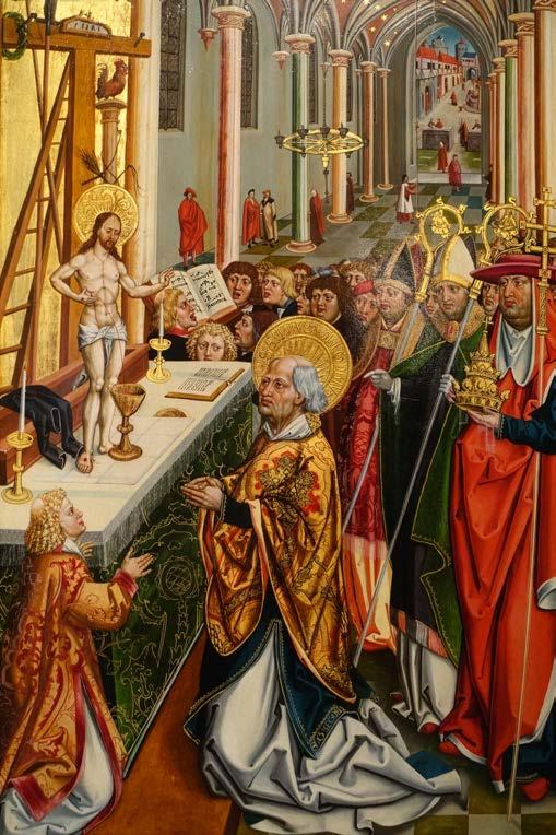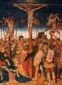 Many people in Lombardy bought these relatively inexpensive works of art. Painters, in particular, liked to buy them because they served as a kind of sample book. After all, the plaques featured well-constructed scenes that could be translated into paintings with relatively little effort. Our example accurately reproduces essential elements of the plaque (the group of mourning women in the left corner; the horseman beneath Christ’s cross; the warrior shouldering a club on the right), while the artist altered the image regarding minor details. For instance, the soldier between the two shield bearers on the right is not naked – as he was on Mondella’s plaque – but clothed.