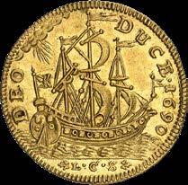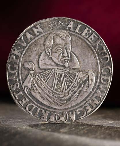Lovers of Renaissance art will be delighted by the portrait that Margrave John of Küstrin had immortalized on a 21-gram gold medal. Those interested in economic history are sure to be amazed by the 1686 and 1690 Guinea ducats of fabulous quality. Fans of Frederick the Great will find a wonderful selection of single and double Friedrich d’ors. Particularly noteworthy are the talers that Frederick II specifically had made for trade as they illustrate the enormous ambitions of the Prussian king. The piaster was produced for China, the Albertus taler for trade in the Baltic Sea, and the Levant taler for the Levant.