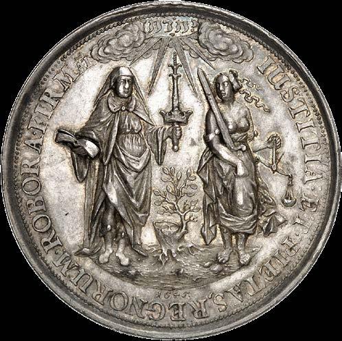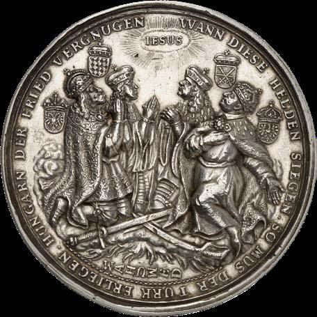 The coin with the highest estimate in auction 437 – an impressive 200,000 euros – was minted under Leopold I. It is a diplomatic gift (ehrenpfennig) of 20 ducats from Hall, commemorating the final annexation of Tyrol to the Habsburg hereditary lands in 1666.