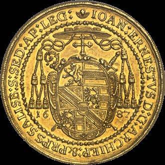 Salzburg. Johann Ernst von Thun und Hohenstein, 1687-1709. 20 ducats 1687. NGC AU58. Extremely rare. Extremely fine.