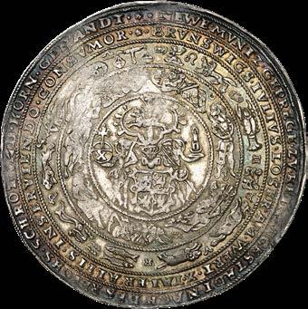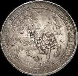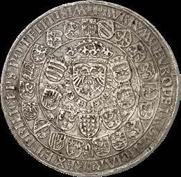 A good example of this is a spectacular representative issue of Maximilian I with the year of 1509 and a weight of five gulden. Another impressive specimen is the broad 1.5-fold reichstaler of the “Three Emperor Issue” type, which was probably created under Ferdinand II, Archduke of Tyrol, between 1564 and 1580.