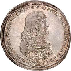 Johann Friedrich, 1665-1679. Löser zu 6 Reichstalern 1679, Zellerfeld, auf seinen Tod am 28. Dezember, geprägt im Gewicht von 5 Reichstalern.