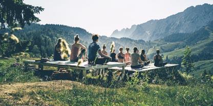 And those who are among the really early birds set off for the “morning yoga by the lake”, the sunrise-hike up to lofty heights or join us on a hike through wild and romantic Glemmbach Gorge.