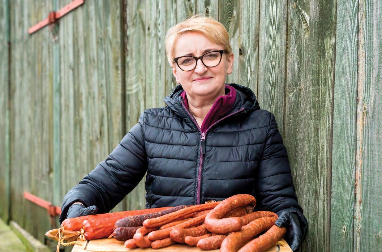 Mieszkanka Murczyna (pow. żniński) prowadzi sklep „U Doroty”, gdzie sprzedaje wytwarzane w jej gospodarstwie wędliny, powstające w oparciu o tradycyjne pałuckie receptury. – Początkowo przygotowywaliśmy je wyłącznie dla siebie, ponieważ mąż i dzieci mają alergie, przez które nie mogą jeść wielu produktów dostępnych w sklepach. Okazało się jednak, że nasze wędliny smakują też innym – wspomina. W 2019 roku rodzina Słomkowskich zarejestrowała produkcję, sprzedaż i zaczęła pracę w przydomowej piwnicy. Gdy potrzeby okazały się większe, skorzystali z dofinansowania „Lokalnej Grupy Działania Pałuki – wspólna sprawa” na zakup maszyn masarskich.