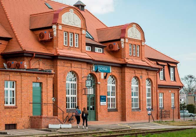 Samorząd województwa konsekwentnie rozwija i unowocześnia transport kolejowy. Kupujemy zeroemisyjne, klimatyzowane, dostosowane do potrzeb osób z niepełnosprawnościami, nowoczesne, elektryczne zespoły trakcyjne (w latach 2014-2023 łącznie 18 takich pociągów); rewitalizujemy linie kolejowe i dworce. Przykładem tych ostatnich inwestycji jest rewitalizacja dworca w Tucholi (na zdjęciu).