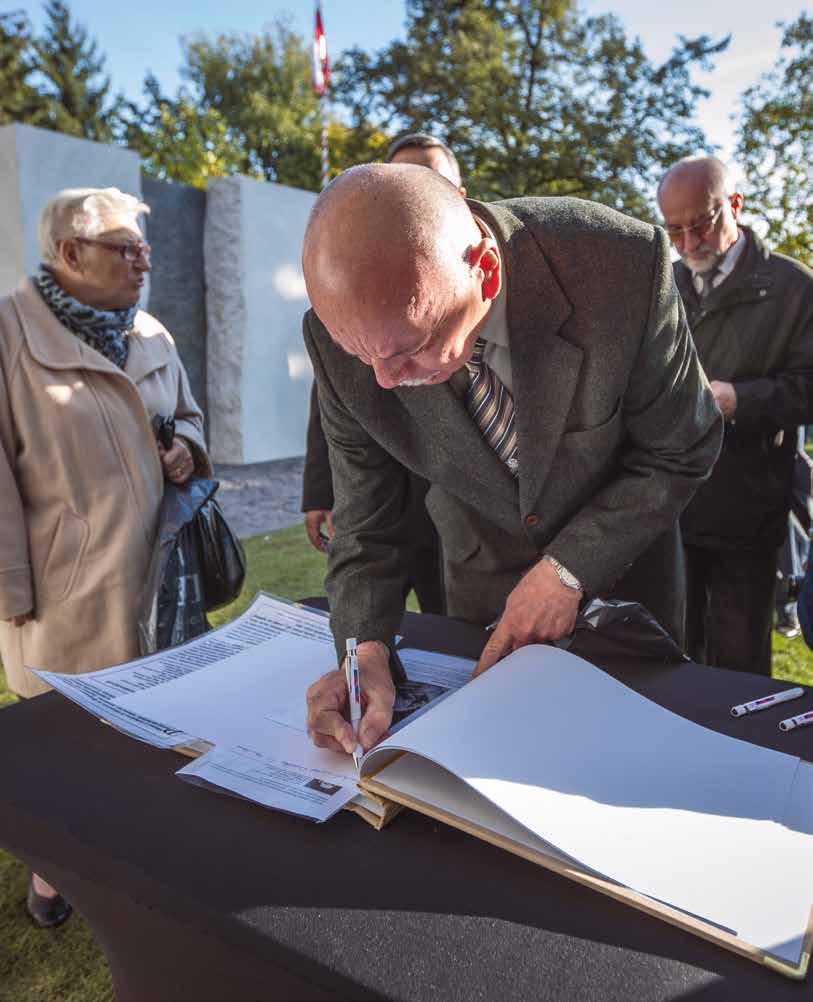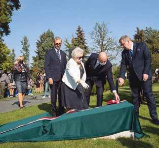–OfiarowaliżyciePolsce– taki napis można przeczytać na płycie upamiętniającej pedagogów zamordowanych przez niemieckich zbrodniarzy.Toruń, Park Pamięci Ofiar Zbrodni Pomorskiej 1939, fot. Andrzej Goiński dla UMWKP Toruń. Park Pamięci Ofiar Zbrodni Pomorskiej 1939. Uroczystość odsłonięcia instalacji poświęconej nauczycielom zamordowanym w 1939 roku – 3.10.2020, fot. Mikołaj Kuras dla UMWKP